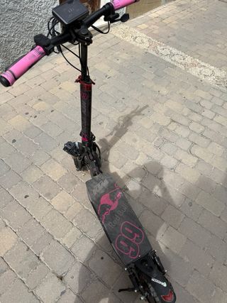 Patín eléctrico con un diseño deportivo y llamativo, inspirado en KTM y Red Bull. PRECIO NEGOCIABLE!! Se entrega con su antiguo manillar que trae de serie, el que tiene está cambiado por uno de bicicleta, vinilos de ktm red bull puestos y mangos cambiados. Batería cambiada hace 4 meses y focos cambiados. - Autonomía: 60-70km - Velocidad: 25 - 40 km - Manillar con puños rosas. - Ruedas con detalles rosas. - Base con gráficos de Red Bull Cualquier duda sobre el patín contácteme por privado