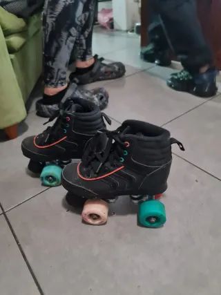Patines de estilo quad, perfectos para disfrutar del patinaje. - Talla39 -Usados un día (un par de horas) -Diseño alto para mayor soporte. - Combinación de colores negro y turquesa. - Cordones a juego.