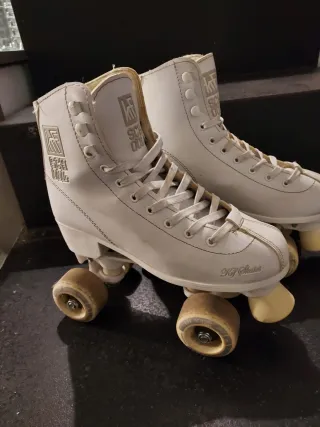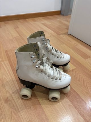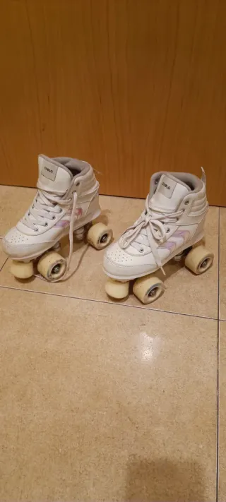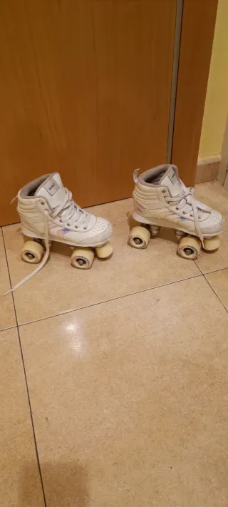 Se venden patines de 4 ruedas en color blanco. Ideales para iniciarse en el patinaje. - Diseño clásico. - Ruedas de alta durabilidad. - Cierre de cordones.