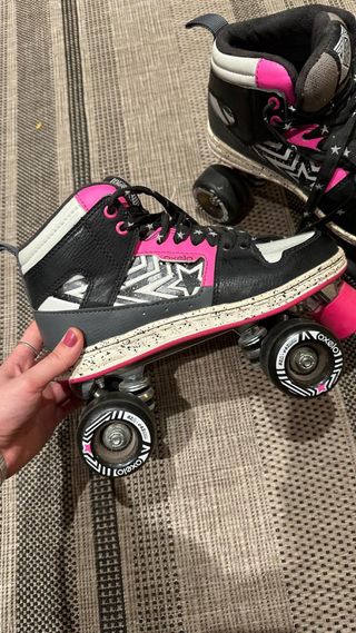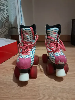 Patines de cuatro ruedas con un diseño llamativo. - Talla 35.5 (EU). - Ruedas de color rojo.
