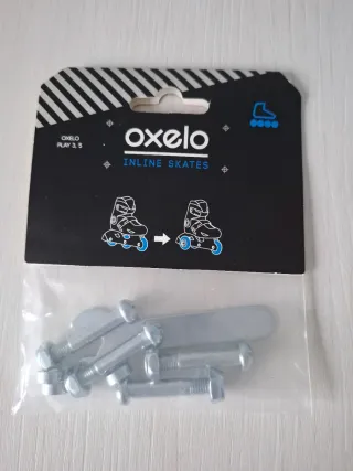 Kit de recambio para patines en línea Oxelo. Permite pasar de las cuatro ruedas en línea a una rueda delante y 2 detras para ganar estabilidad. - Incluye tornillos y tuercas. - Piezas metálicas.