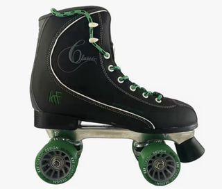 •Tiene un diseño moderno en colores negro, verde y blanco, con detalles llamativos. •Está equipado con cuatro ruedas alineadas con rodamientos ABEC-5, que ofrecen un buen equilibrio entre velocidad y control. •El botín cuenta con un sistema de ajuste triple: cordones, velcro y una hebilla de cierre rápido, lo que garantiza un buen ajuste y soporte para el tobillo. •Ideal para principiantes o patinadores intermedios.