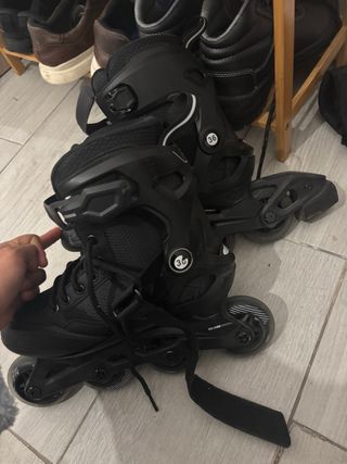 Patines en línea de cuatro ruedas en color negro. dos meses de uso, motivo de venta viaje - Talla 36.