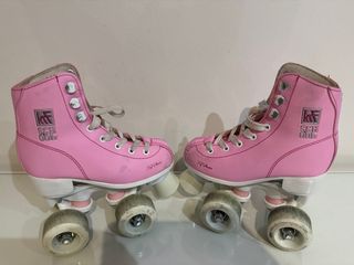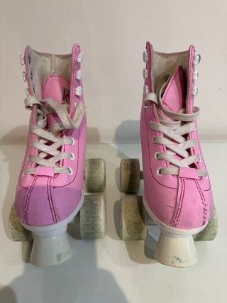 Patines de 4 ruedas rosas comprados en Decathlon, talla 29