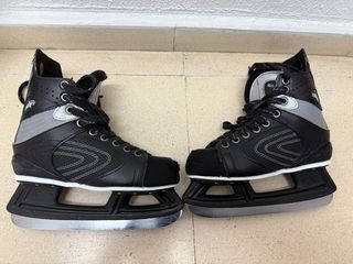 Patines de hockey sobre hielo en talla 33. Diseñados para ofrecer buen soporte y comodidad. - Cierre con cordones. - Diseño deportivo en negro y gris. - Hoja de acero inoxidable.