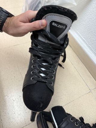 Patines de hockey Bauer made in canada. Talla 41. Me costaron 80 euros hace 15 años. Han perdido la protección de plástico que refuerza la parte trasera de la bota pero la bota está en buen estado. Cuchillas de acero con marcas de óxido pero en buen estado. Cordones en perfecto estado. Se pueden entregar en mano en Vitoria, Pamplona y Bilbao.