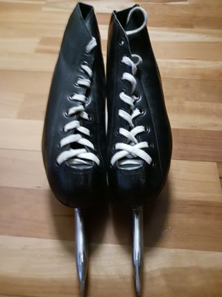 Patines de hielo negros, perfectos para patinaje artístico. - Diseño clásico y elegante. - Material sintético de alta calidad. - Cierre con cordones para un ajuste seguro. - Hoja de acero inoxidable.