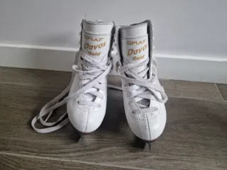 Patines de hielo Graf Davos Gold. - Talla 30. - Color blanco. - Cierre con cordones.