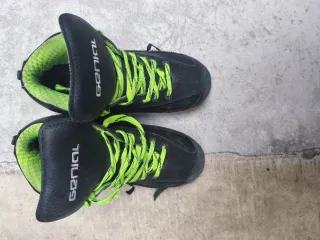 Patines de hockey marca Genial en talla 41. Diseñados para ofrecer comodidad y rendimiento. - Exterior negro con detalles en verde neón. - Cordones de ajuste en verde neón. - Interior forrado en tela verde.