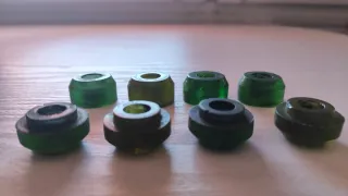 Suspensiónes para patines de hockey marca Rol Line. Piezas de repuesto para patines. - Color verde translúcido y negro. - Diseño cónico y cilíndrico.
