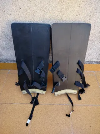 Espinilleras de hockey Bauer, modelo Mach Supreme. Aptas tanto para patinaje linea, tradicional o hockey patines. Usadas dos veces, no tienes roces en ninguna almohadilla interior (ver fotos), le quedaban un poco pequeñas y cambiamos a la talla siguiente, si hubiésemos visto las tablas de tallas hubiésemos acertado a la primera. Tienes una imagen con las dimensiones de la tallas, el modelo es el M de 14" (marcado en verde). Nuevas en tienda 160€. OJO CON EL ENVIO 50x35x16 cm como poco - Color negro con detalles en amarillo. - Cierre con velcro.