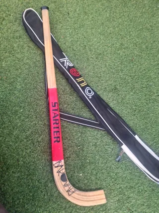 Pack de hockey sobre patines compuesto por: Stick Reno Starter: Un clásico de la marca Reno, conocido por su resistencia y buen equilibrio. El mango de madera está en buen estado y conserva la pala original con su característico laminado. Funda Reno Original: Funda acolchada oficial en color negro con el logotipo de la marca. Perfecta para proteger el stick y transportarlo cómodamente gracias a su cinta ajustable. Estado: Usado, pero muy bien cuidado. Sin roturas estructurales, solo las marcas normales del uso en pista (ver fotos).