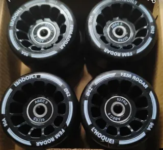 Pack de 8 ruedas nuevas para patines de hockey. super ligeras, gran adherencia y rápido desplazamiento - Dureza 90A. - Marca FEM RODAR L'HOQUEI - Diámetro 62x26mm - con todos los rodamientos . Abec 9..........69 euros ***** REGALO DE UNA BOLA PERSONALIZADA EN ENERO******