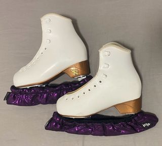 Se venden patines de patinaje artístico Risport Venus. - Color blanco. - Talla 225 (22mm) del pie - Incluyen protectores de cuchilla morados brillantes.