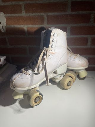 Se venden patines artísticos de color blanco. - Talla 33. - Diseño clásico. - Ruedas aparte incluidas.