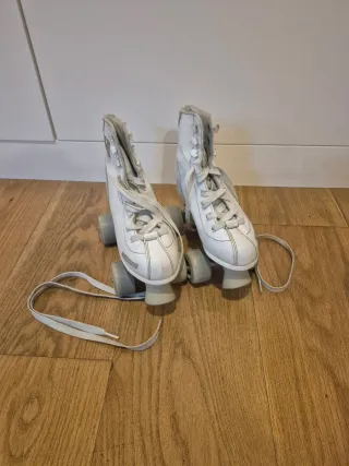Patines artísticos en color blanco roto, de cuatro ruedas. Ideales para principiantes. talla 28