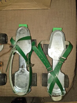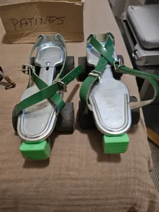 Perfectos para COLECIONISTAS Marca y Origen: Se puede ver claramente el logotipo de Sancheski grabado en la chapa metálica. La fábrica de Irún fue la cuna de estos patines que marcaron a varias generaciones en España. Modelo Evolucionado: Este par cuenta con correas de plástico verde y frenos delanteros (también de color verde), lo que indica que es un modelo posterior a los de correas de cuero marrón. Los frenos fueron una innovación importante para la seguridad y para realizar ciertas figuras de patinaje artístico. Estado: Se ven en un estado de conservación muy bueno. El metal brilla, ESCUCHO OFERTAS
