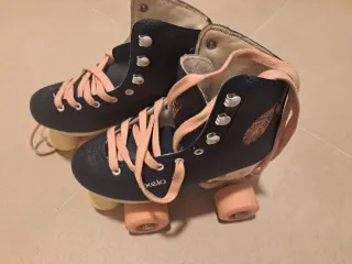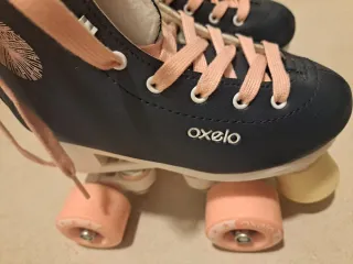 Patines artísticos 4 ruedas marca oxelo. Prácticamente sin uso. Color rosa bebé. Talla 38.