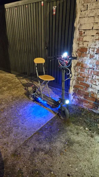 Características: Diversas funciones en el controlador; Velocidad, potencia, salida.. Ruedas/ Neumáticos; Macizos Luces; Tiene dos delanteras, la trasera, leds inferiores e intermitentes. (El modelo de la luz trasera no es el suyo) Motor; Funciona perfectamente, 40km/h Aprox. Batería; Llendo rápido unos 25km. Frenos; Tiene Freno motor, por botón. Los frenos están sin pastillas, tiene los discos un poco doblados. Carga; Tarda unas 6 Horas. Es estable, se conduce bien, no dió ningún problema, no pasa nada si llueve. (los guardabarros los daría, aun que no los uso personalmente) Algo negociable, No envío