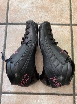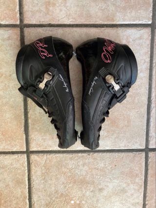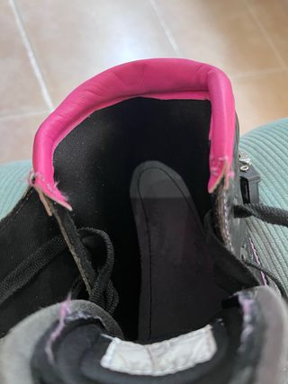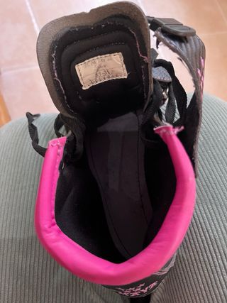 Patines de velocidad negros y rosas talla 38 en perfecto estado, con alguna rozadura en el exterior (que sale en la foto). El interior está intacto - Cierre de hebilla. - Cordones. - Diseño deportivo.