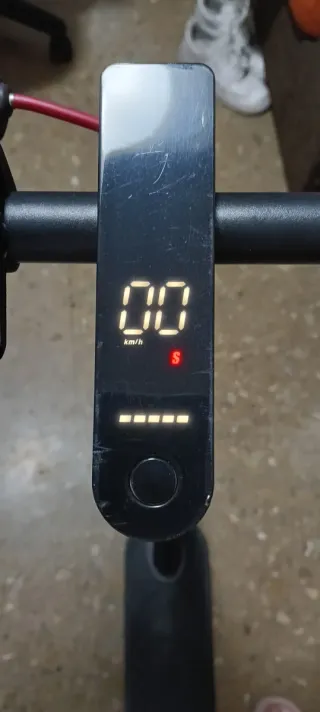Patinete eléctrico en color negro. - Pantalla digital con indicador de velocidad. - Indicador de modo deportivo (S). - Batería con barras de carga. Cuenta con sistema resistente a agua y charcos lo vendo porque no lo uso es un Navee v25 va perfecto y esta bien cuidado.