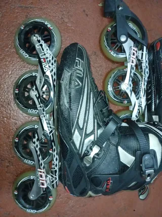 Talla 45, poco uso, pequeño roce por caida. - Ruedas de 100mm. - Cierre de velcro y hebilla. - Diseño deportivo Fila.