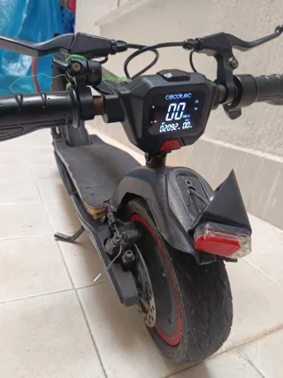 Patín eléctrico Cecotec con pantalla digital. PARA PIEZAS!! El patín aún funciona lo que tiene un tornillo en la parte de abajo del manillar que se partió en dos y ahí dentro se quedó el tornillo, por lo que el manillar no se mantiene recto en la conducción, tiene la rueda de atrás pinchada la de adelante está bien, el freno de la derecha no funciona, el de la izquierda funciona pero no del todo correctamente, la luz trasera esta descolocada del sitio habra que reprarla lo dejo a buen precio, clientes serios porfavor, PRECIO NO NEGOCIABLE GRACIAS. - Pantalla con información de velocidad y kilometraje. - Manillar con puños negros.
