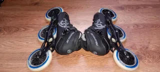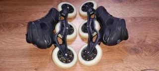 Talla 41 -42 Fueron un regalo, sólo les usé 1 día ( no sé patinar y es más cansado de lo que pensé) Les busqué en internet y valen unos 250-300€. Llevan rodamientos abec 7 muy veloces. XjShadow Dustin Latimer.