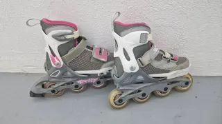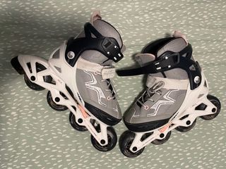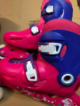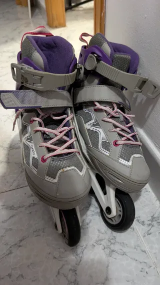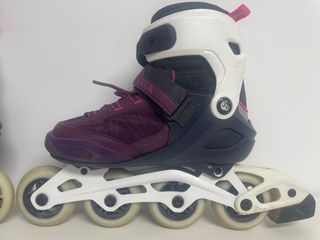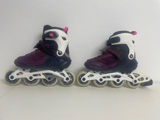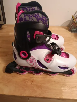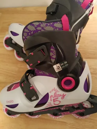 Patines en linea para niña. Talla 34_36 Marca oxelo decathlon Ideal gemelas, mellizas, hermanas, amigas... Calcetín interior ajustable a la talla. Se nota que están usados pero están en buen estado, no han sido muy llevados. Los 2 pares por 15€ El par suelto 9€