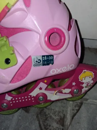 Patines en línea para niña, talla 28/30 Oxelo play3 color Rosa. Están en buen estado y listos para usar. - Color rosa y morado. - Diseño infantil.