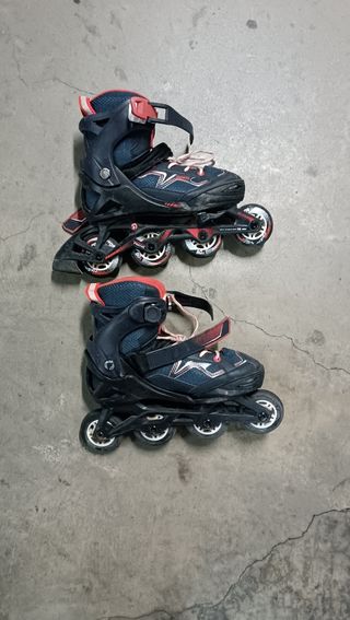 Patines en línea para niño, ajustables a la talla 34-36. Están en buen estado y son ideales para principiantes. El precio es negociable. - Color negro y rojo. - Diseño moderno y deportivo. - Sistema de cierre fácil de usar.