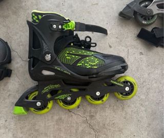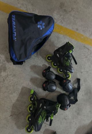 Patines en línea para niños, usados pero en buen estado. Ideales para principiantes. - Diseño cómodo y ligero. - Sistema de cierre con velcro y cordones. - Ruedas resistentes y duraderas. - Talla ajustable.