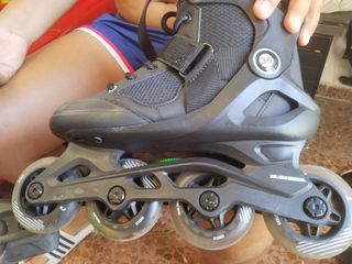 Patines en línea marca Roces, color negro, con cierres ajustables y estructura resistente. Modelo ideal para uso recreativo o entrenamientos. Ruedas en buen estado y freno trasero incluido.