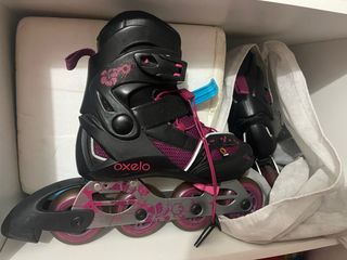 Patines en línea Oxelo, ideales para niñas o mujeres. Están en muy buen estado y son de color negro y morado. - Marca: Oxelo - Color: Negro y morado