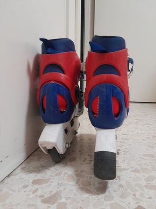 Patines en línea de color azul y rojo, perfectos para iniciarse en el patinaje. - Diseño ajustable para adaptarse al crecimiento. - Cierre de velcro y hebilla para mayor seguridad. - Ruedas de color rojo. talla desde 28 al 30, como nuevo, usado 2 veces.