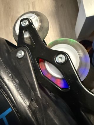 patines en linea talla 28-31, con dos ruedas detras para aprender a patinar, con posibilidad de ponerlos en 1 linea de tres. algun roce por las 2 veces que se usaron.