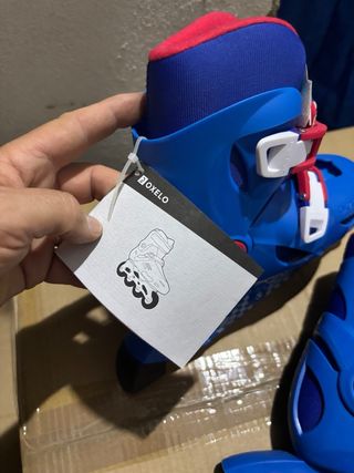 Patines en línea de color azul y rojo para niños. - Diseño deportivo. - Cierre de velcro y hebilla. - Ruedas resistentes. talla de 28 a 31