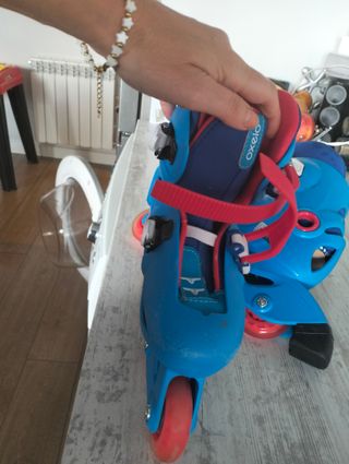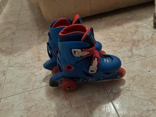 Patines en línea para niños de la marca Oxelo, talla 32-34. Son ajustables para adaptarse al crecimiento, interior desmontable para facilitar la limpieza. - Color azul con detalles en rojo. - Cierre con velcro y hebilla. - Ruedas de poliuretano. Muy buen estado, muy poco uso.