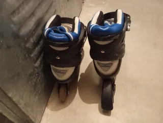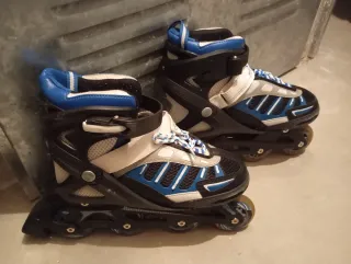 Patines en línea ajustables para tallas 38 a 41. Diseñados para ofrecer comodidad y estabilidad. - Diseño en color azul, negro y blanco. - Cierre de velcro y hebilla. - Ruedas de poliuretano.