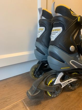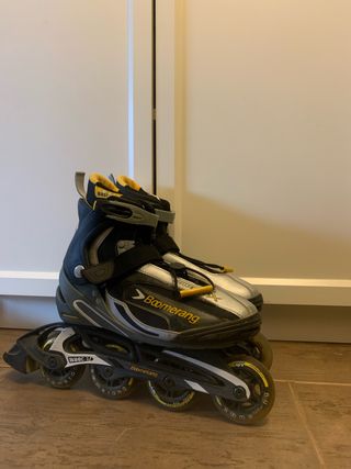 Patines en línea de la marca Boomerang. - Diseño en negro, gris y amarillo. - Cierre con velcro y hebilla. - Ruedas con detalles amarillos. Talla 41/42