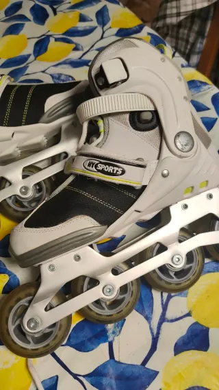 Patines en línea de la marca MY SPORTS, ideales para deslizarse con estilo. - Diseño en color blanco y negro. - Cierre de velcro y hebilla. - Ruedas resistentes. - Talla 39 Están como nuevos se han usado solo dos veces. Mira mis valoraciones. Hago envíos.