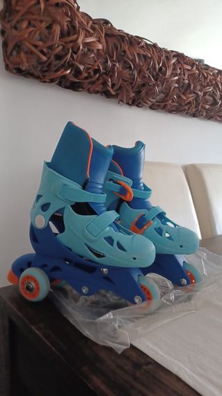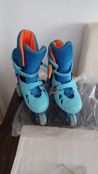 Patines en línea para niños, en buen estado. Ideales para principiantes. - Color azul y naranja. - Talla adaptable (30-31-32) - Diseño cómodo y ligero.