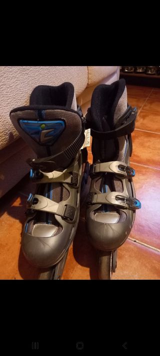 Patines en linea Jack London Color negro y verde militar Dan hasta la talla 42, yo uso un 38 y me quedan bien Llevan bastante refuerzo en la zona del tobillo, acolchado