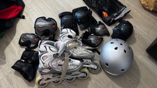 Patines en linea talla 30-32 Protecciones talla 2xs de 3 a 7 años hasta 25 kg. Usados pero en buen estado
