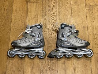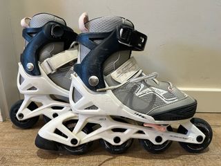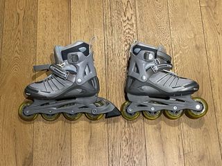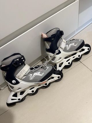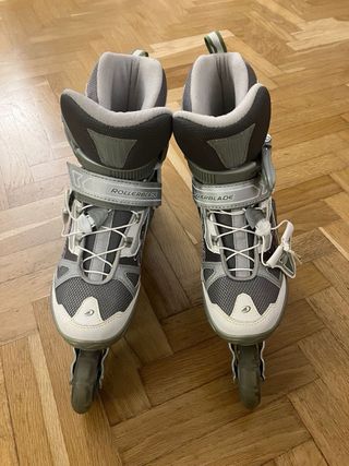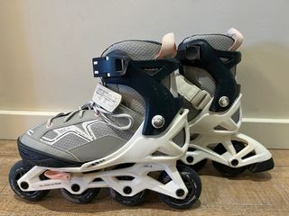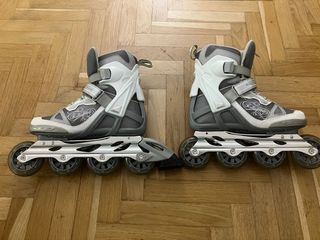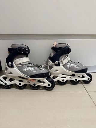 Preciosos patines en línea Rollerblade en color gris, talla 38. - Diseño deportivo y moderno. - Cierre de velcro y hebilla para un ajuste seguro. - Ruedas de 90 mm.