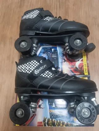 Patines en línea de color negro, ideales para patinar. NUEVOS SIN ABRIR - Cierre de velcro y hebilla. - Diseño deportivo. - Ruedas de alta resistencia.