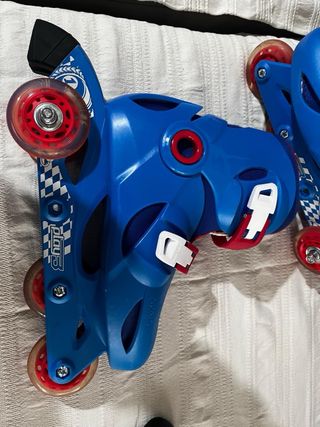 Patines en línea ajustables para tallas 30 a 32. Diseñados para ofrecer comodidad y estabilidad. - Cierre de velcro y hebilla. - Ruedas resistentes. REGALO PROTECCIONES