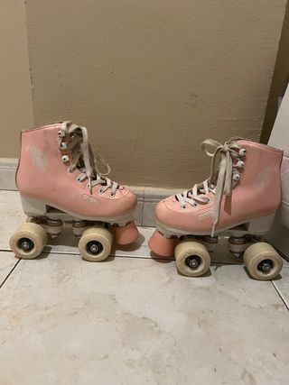 Patines en línea para niña, en color rosa y blanco. Están en muy buen estado, apenas se han usado. - Ideales para principiantes. - Diseño atractivo y cómodo. - Incluye dos patines.