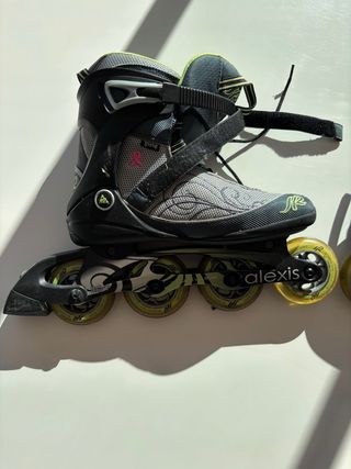 Patines en línea K2 modelo “Alexis”, talla 41,5. Muy cómodos y con buena sujeción. Ruedas en buen estado, ideales para empezar o volver a patinar. Frenos incluidos. Funcionan perfectamente.