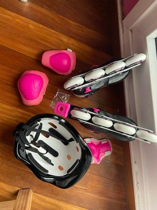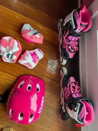 Todo a estrenar, 4 ruedas, ajustable talla 31 a 34, Abec7 y forro interior.se incluye casco y protectores(rodilla, muñeca y codos)